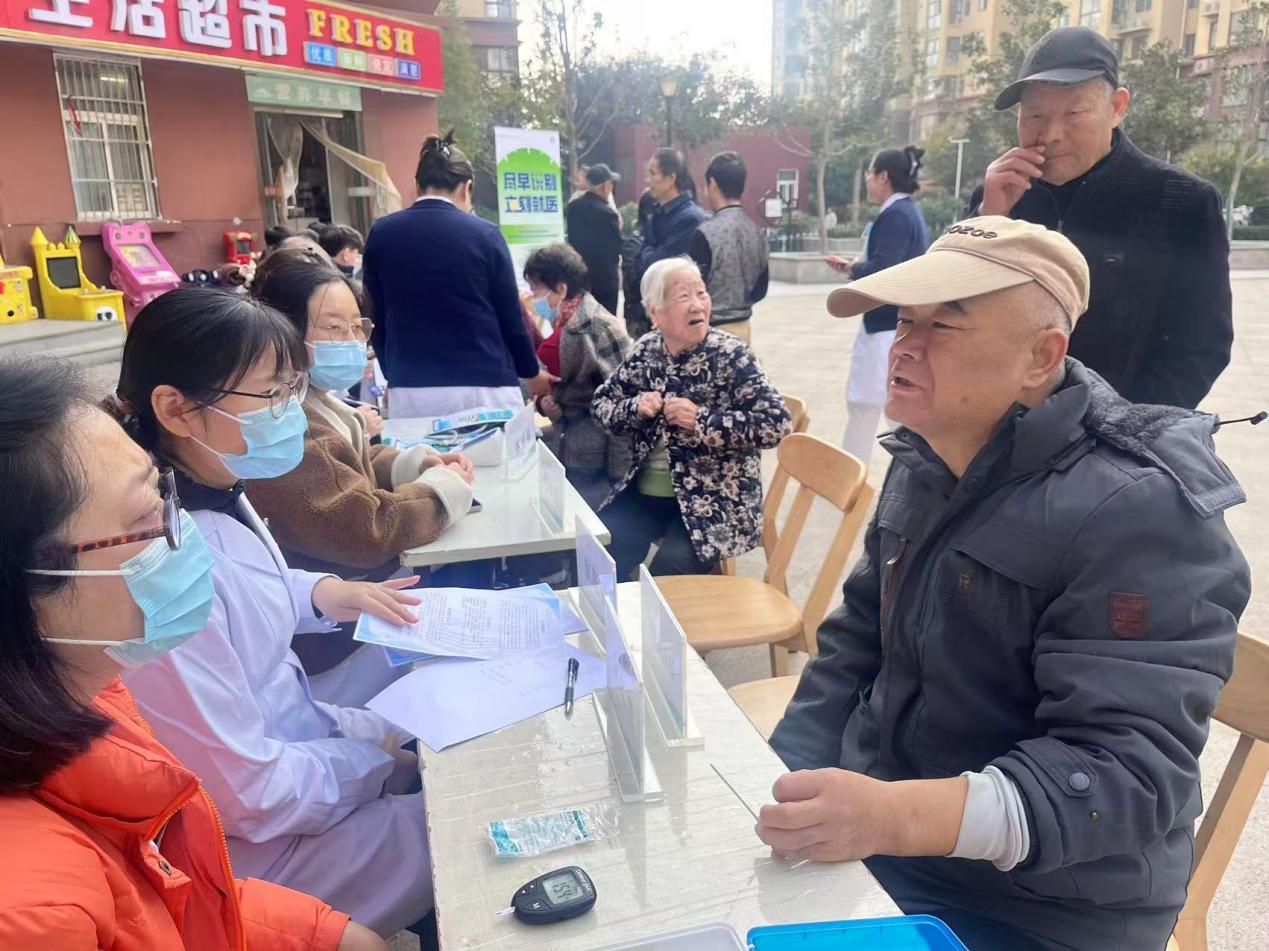 医护人员为老人进行血压、血糖等基础检查,详细询问身体状况并提供健康建议,让居民在家门口享受专业医疗服务。