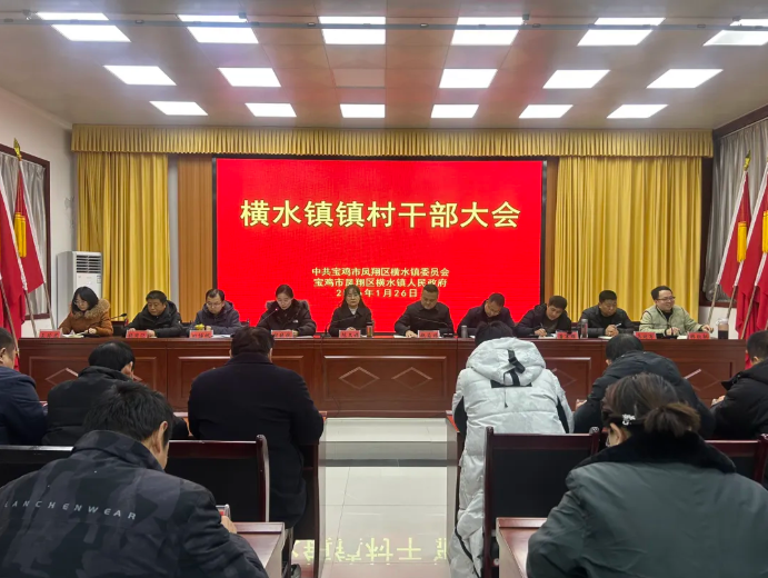 1月26日,凤翔区横水镇召开全镇镇村干部大会,专题传达学习区一届人大五次会议和区政协一届五次会议精神,安排部署近期重点工作。会议动员全镇上下切实把思想和行动统一到区委、区政府决策部署上来,将区“两会”描绘的蓝图转化为横水发展的具体行动和实际成效。镇领导班子成员、副科级以上干部,各村党(总)支部书记,驻村工作队全体成员,驻镇各单位负责人,镇机关全体干部参加会议。