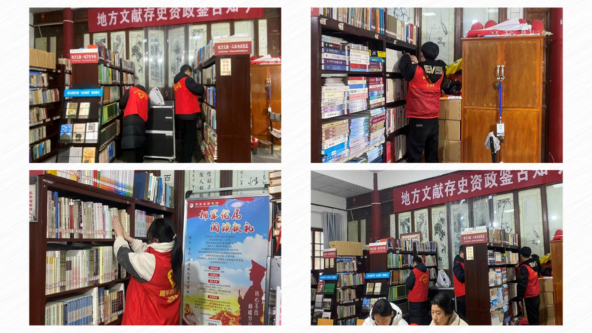 图 1·志愿者在地方文献室及爱心书屋整理书架