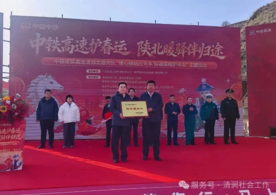 活动现场,陕北腰鼓铿锵热闹、秧歌舞步喜庆欢快,浓浓的年味扑面而来。徐飞同志致辞,向各位司机朋友表达感谢和新春祝福。中铁高速总经理王俊伟同志发言,介绍了中铁高速在春运期间为保障道路畅通、服务司乘人员所做的各项准备工作,并表示将以最饱满的热情和最优质的服务,为广大司乘人员营造安全、顺畅的出行环境。曹波同志为清涧县智驱未来司乘服务协会党支部颁发“2025年度新兴领域党建工作‘标兵服务点’”奖牌,激励其在新兴领域党建工作中持续发挥引领作用,为广大司乘人员提供更贴心、更专业的服务。