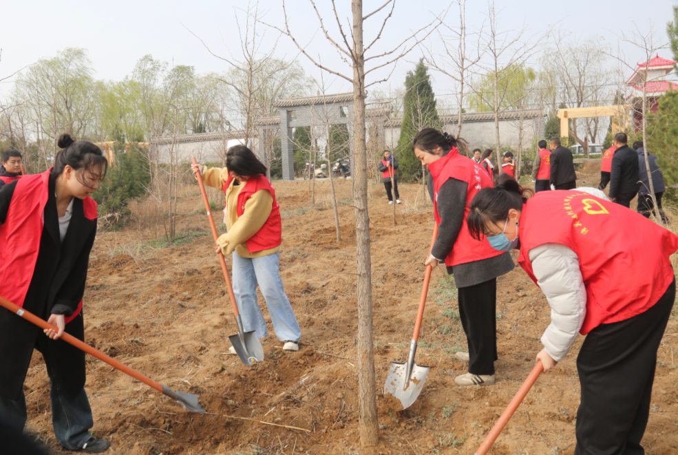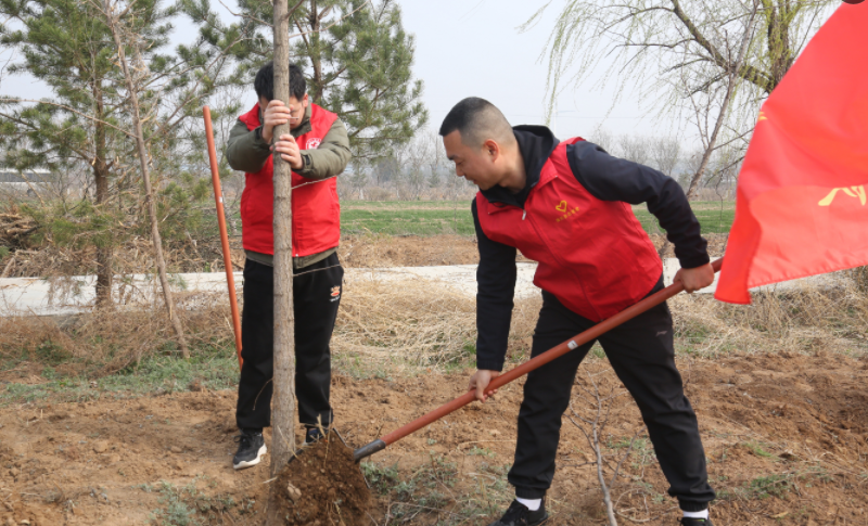 活动现场,身着红色志愿马甲的党员干部们热情高涨、干劲十足。大家分工协作、配合默契,挥锹铲土、扶苗填坑、踏土夯苗……每一道工序都认真细致,每一个环节都有条不紊。经过一番辛勤劳动,一株株新栽种的树苗迎风挺立、错落有致,为寺角营村增添了一抹新绿,也播撒下了绿色发展的希望。
