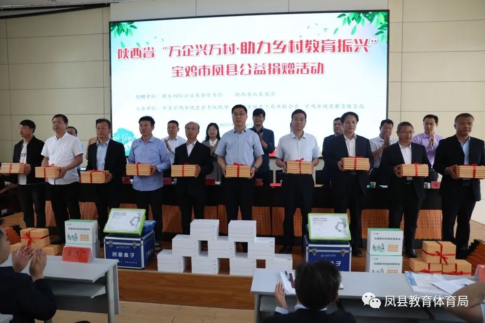 5月30日,陕西省“万企兴万村·助力乡村教育振兴”公益捐赠活动在双石铺中学举行。凤县委统战部、县工商联、县教体局以及部分受捐赠学校校长、师生代表等120余人参加此次活动。