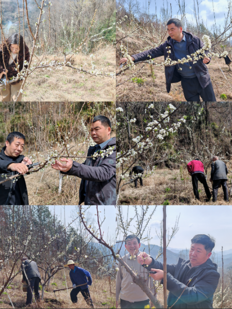 春风吹过汉阴县双喜村,数百亩蜂糖李产业园里李花如雪,缀满枝头。花丛深处,几个身影正忙着修剪枝条——那是该县财政局派驻双喜村工作队和村民们一起抢抓春管的身影。