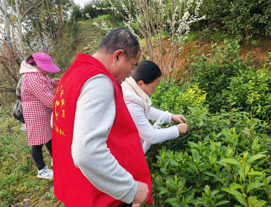 走进天池村生态茶园,采摘工作井然有序、热火朝天。驻村工作队、党员志愿者深入田间,与茶农并肩劳作,现场手把手传授“一芽一叶”标准采摘技艺,细致讲解鲜叶保鲜、茶园管护关键要点,以务实举措助力茶农提升茶叶品质、实现增收致富。茶农们背着竹篓穿梭于茶垄之间,指尖翻飞、轻采细摘,将片片鲜叶收入篓中,脸上满是丰收的喜悦,承载着全村群众增收奔小康的美好期盼。