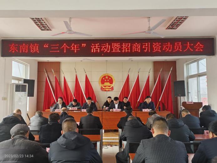 2月22日,陇县东南镇召开“三个年”活动暨招商引资动员大会,贯彻落实省市县“三个年”活动动员会精神,部署全镇“三个年”活动,动员全镇上下树立大抓项目、高质发展,奋力夺取“开门红”,推动东南“三镇”迈出新步伐。
