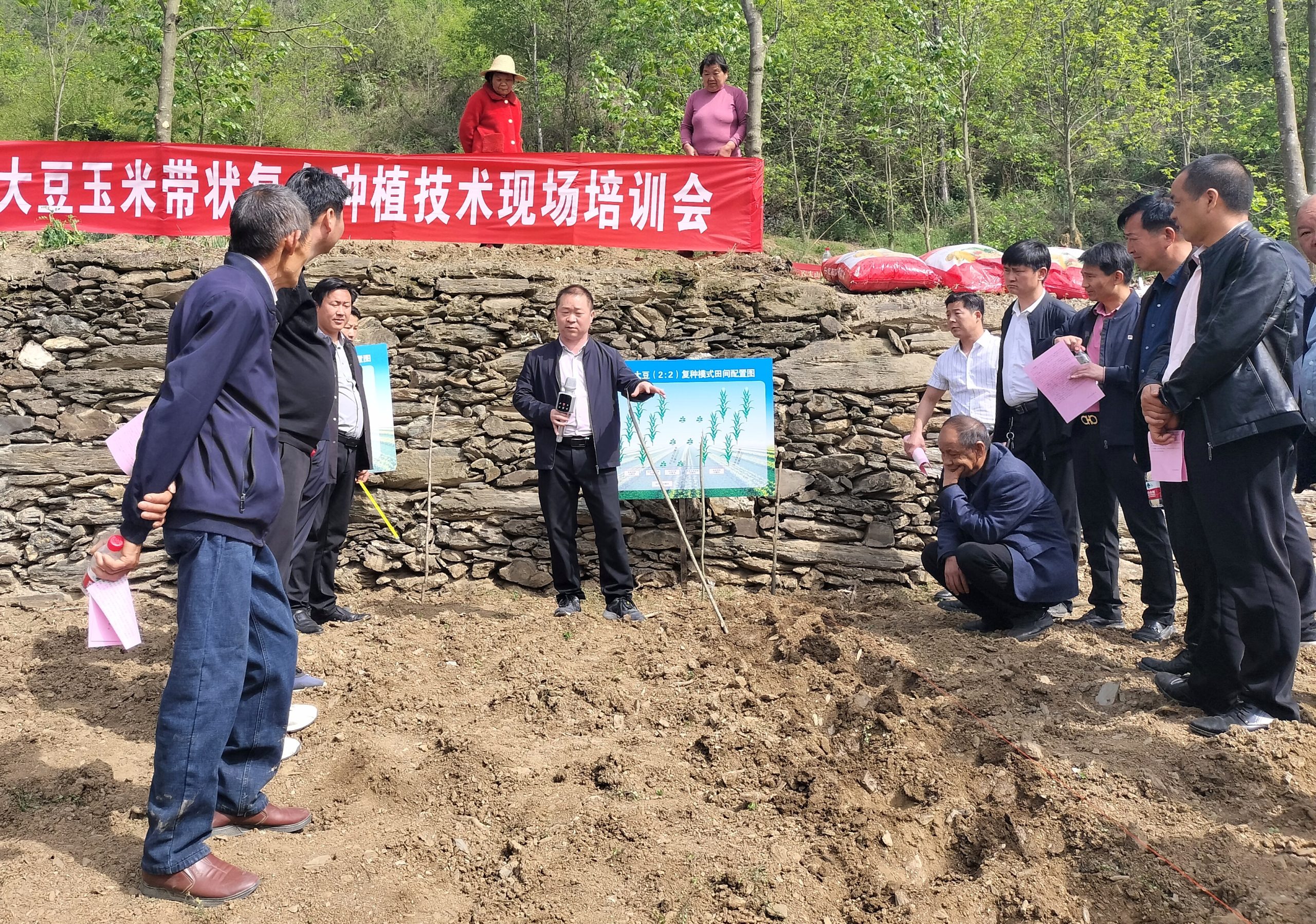 清明前后,种瓜种豆。眼下正值春耕春种的黄金时节,为全面落实年度粮食生产任务,确保稳产增收,4月13日,卡子镇2023年大豆玉米复合种植技术现场培训会在药树村粮油示范基地召开,白河县卡子镇8个村(社区)党支部书记、种植大户等40余人参加培训。