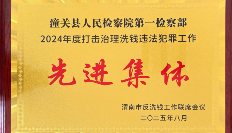 喜报!潼关县人民检察院荣获打击治理洗钱违法犯罪工作先进集体